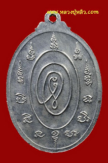 ด้านหลังรูปหล่อพญาเต่ามหาลาภ รุ่นพิเศษ หลวงปู่หลิว วัดไร่แตงทอง จ.นครปฐม ปี 2536 เนื้อเงิน